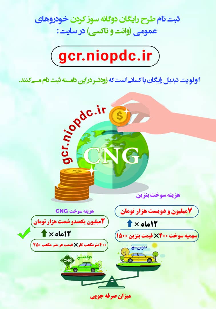 ثبت‌نام در سایت gcr.niopdc.ir و تبدیل خودروهای عمومی طبق این طرح رایگان است.