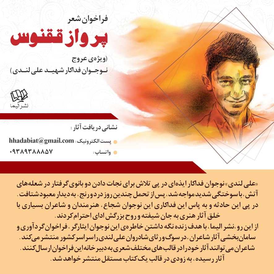 از این روی، دبیرخانهی پرواز ققنوس، با هدف زنده نگه داشتن خاطره این نوجوان ایثارگر، فراخوان گردآوری و سامانبخشی آثار شاعران، در سوگ و رثای شادروان علی لندی را سراسر کشور منتشر میکند.